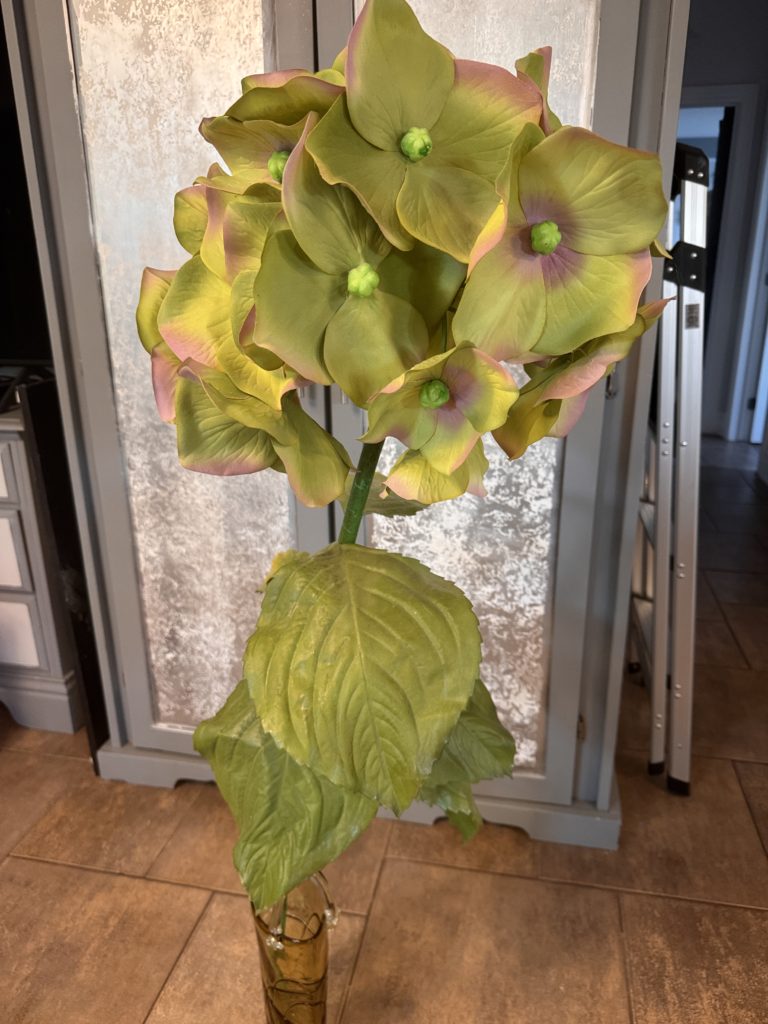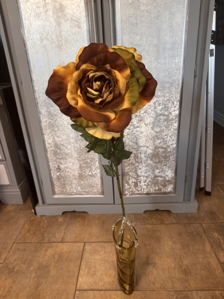 Grande fleur bronze et ocre avec une touche de vert (12po de diamètre x 42po de haut)