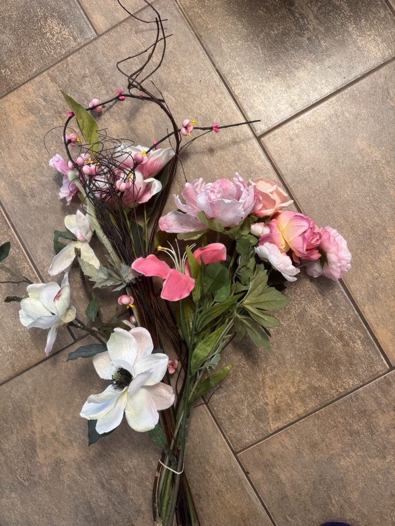 Arrangement floral (sans pot) rose et blanc (30po de haut)