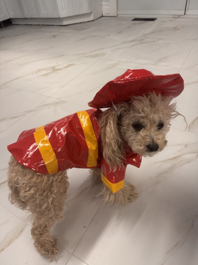 Costume d’Halloween de pompier rouge et jaune pour chien de 8-12 livres