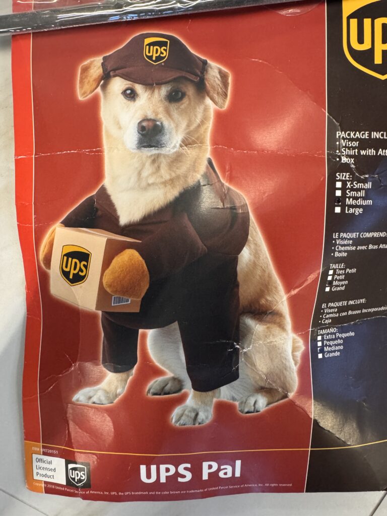 Costume d’Halloween d’un livreur UPS brun et jaune pour chien de 12- 15 livres