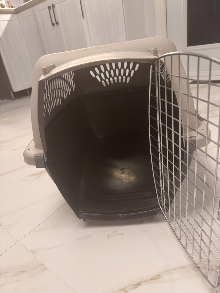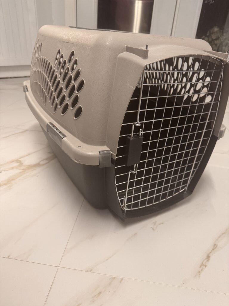 Cage de transport beige et brune pour chien/chat (28po de long x 14po de large x 16po de haut)