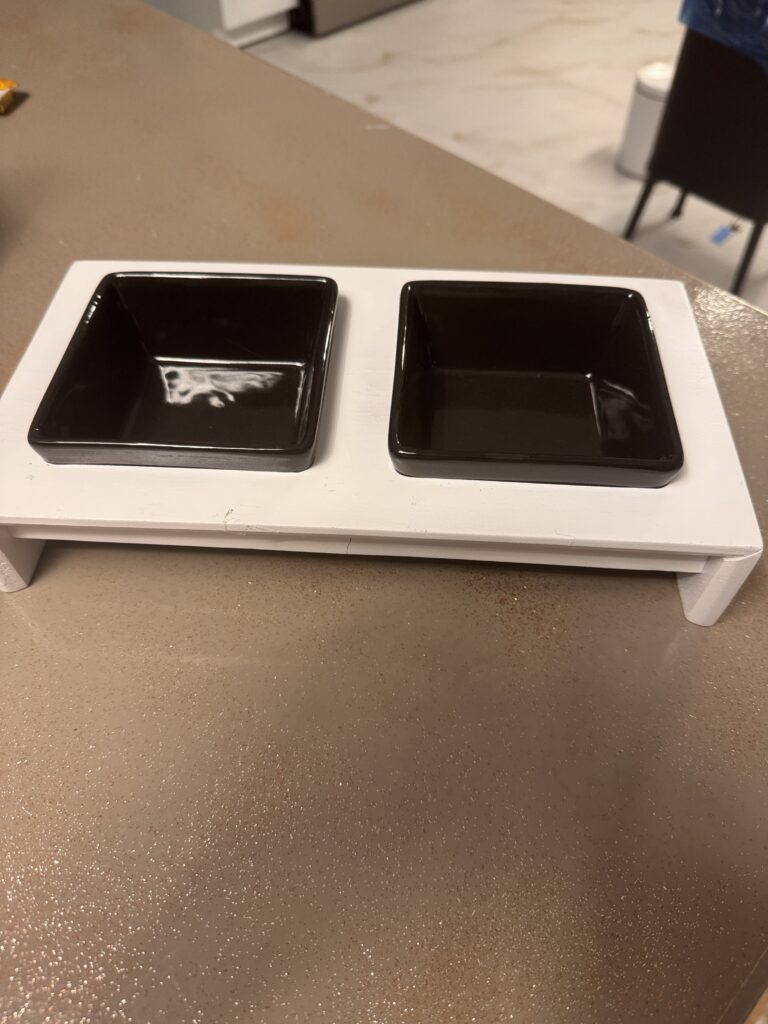 Support surélevé blanc en bois et bols en porcelaine noir pour petit chien ou chat