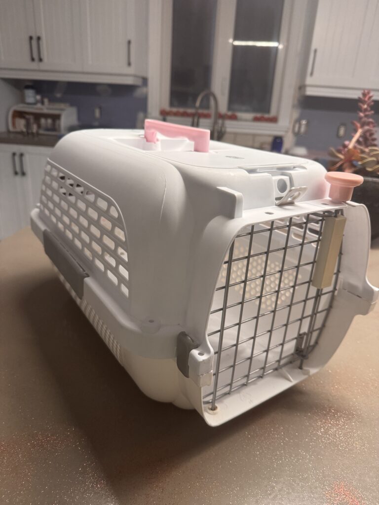 Cage de transport blanche et rose pour chien/chat (19po de long x 10po de large x 10.5po de haut)
