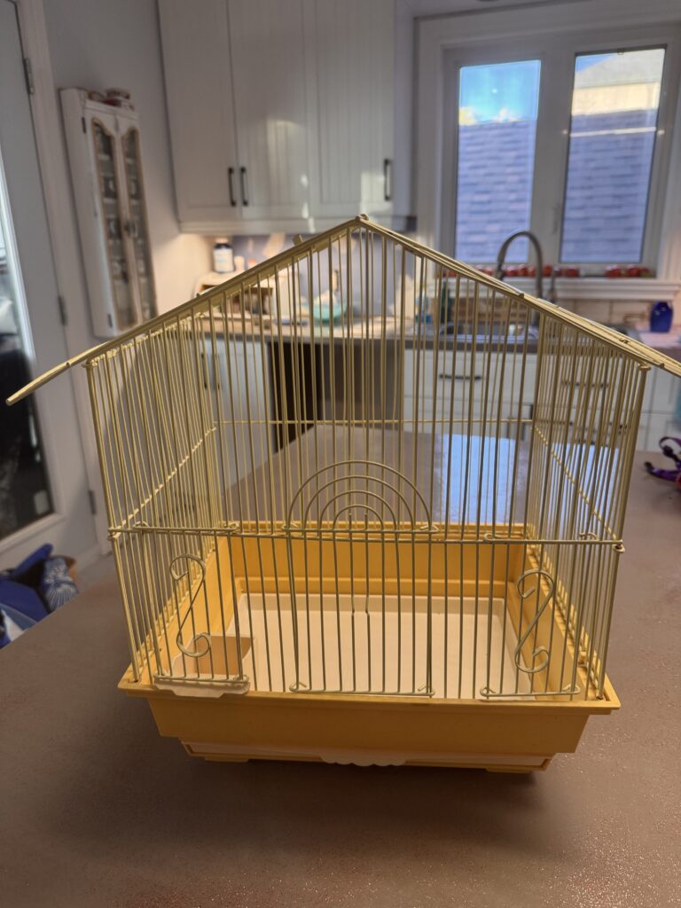 Cage à oiseau jaune de petite taille (14po de large x 11po de profond x 16po de haut)