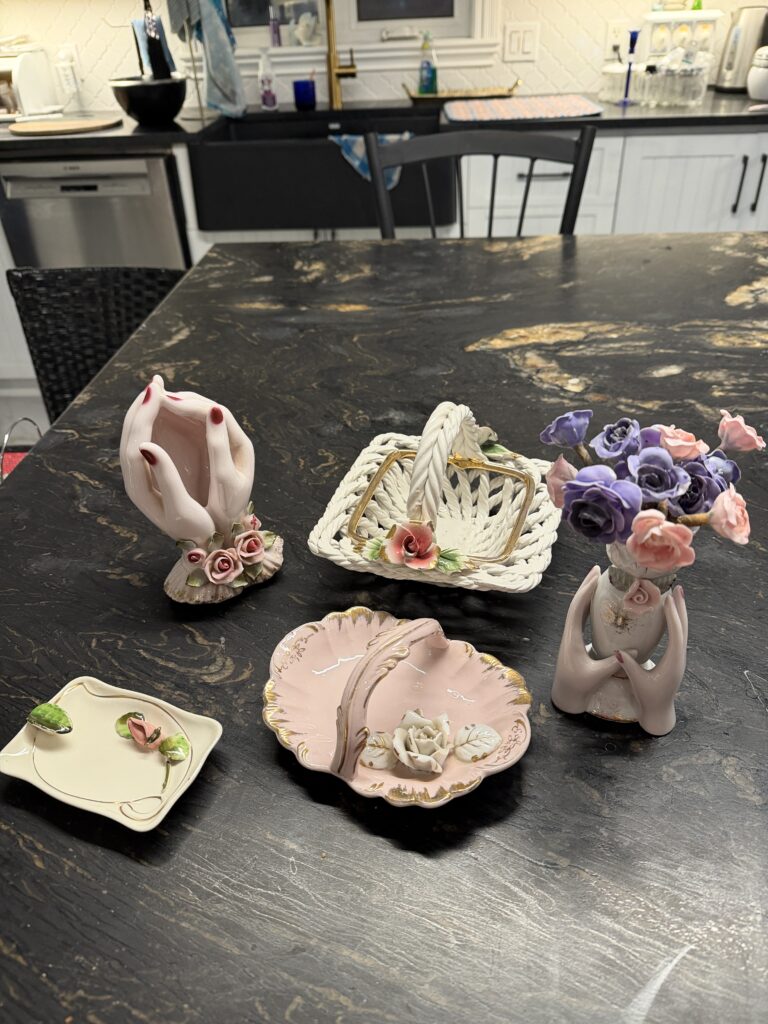 5 pièces de porcelaine délicate en plus des fleurs amovibles, le tout en parfaite condition