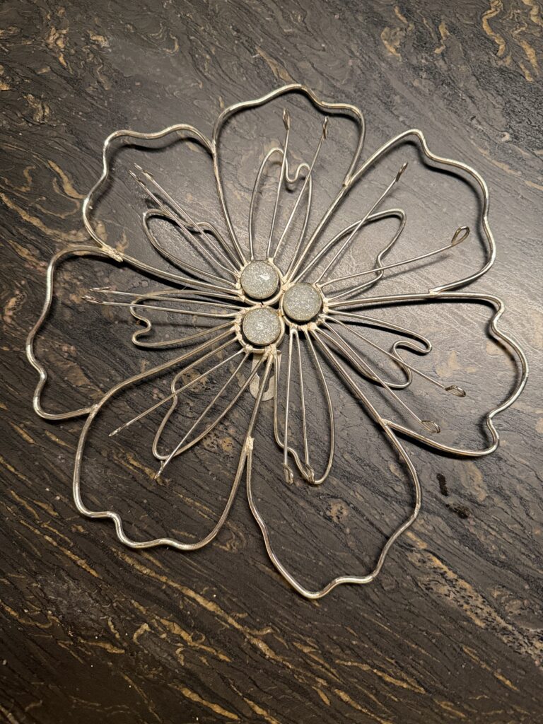 Plaque murale argentée d’une fleur; pièce massive (9.5po de large et de haut)