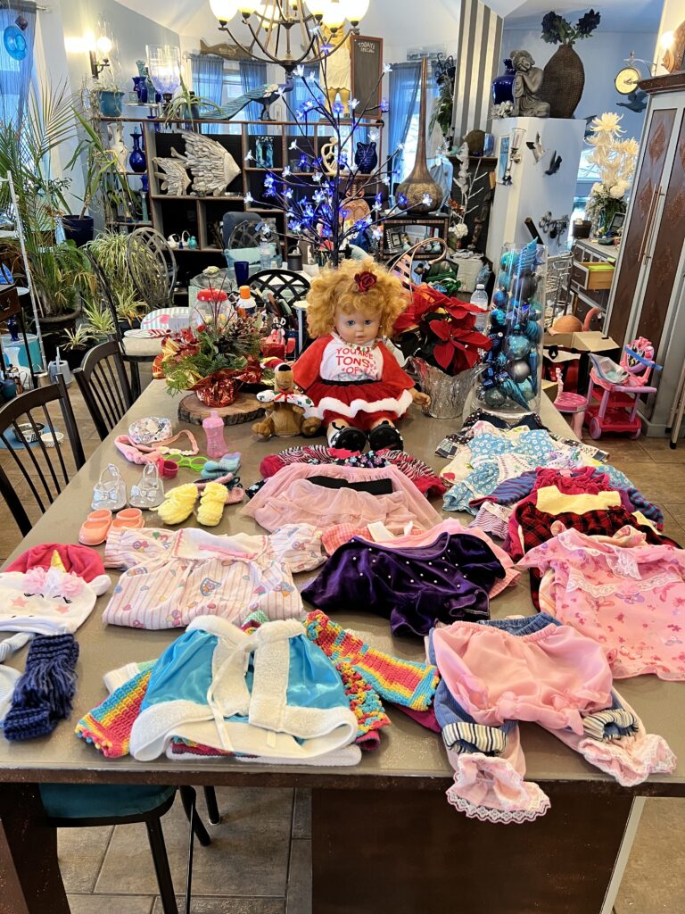 Super belle grosse poupée en chiffon avec son chien de Noël chantant et ses 50 vêtements/acc.