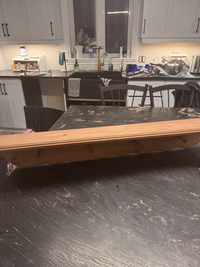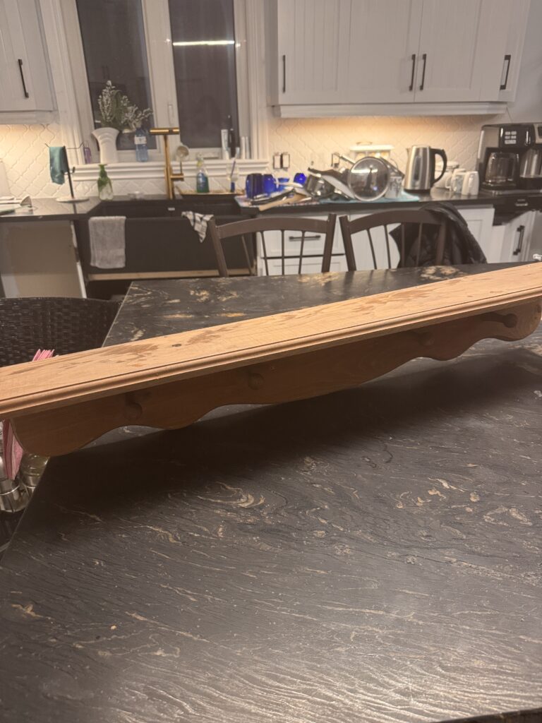 Tablette à chevilles en bois (35.5po de long x 5.5po de profond x 6.5po de haut)