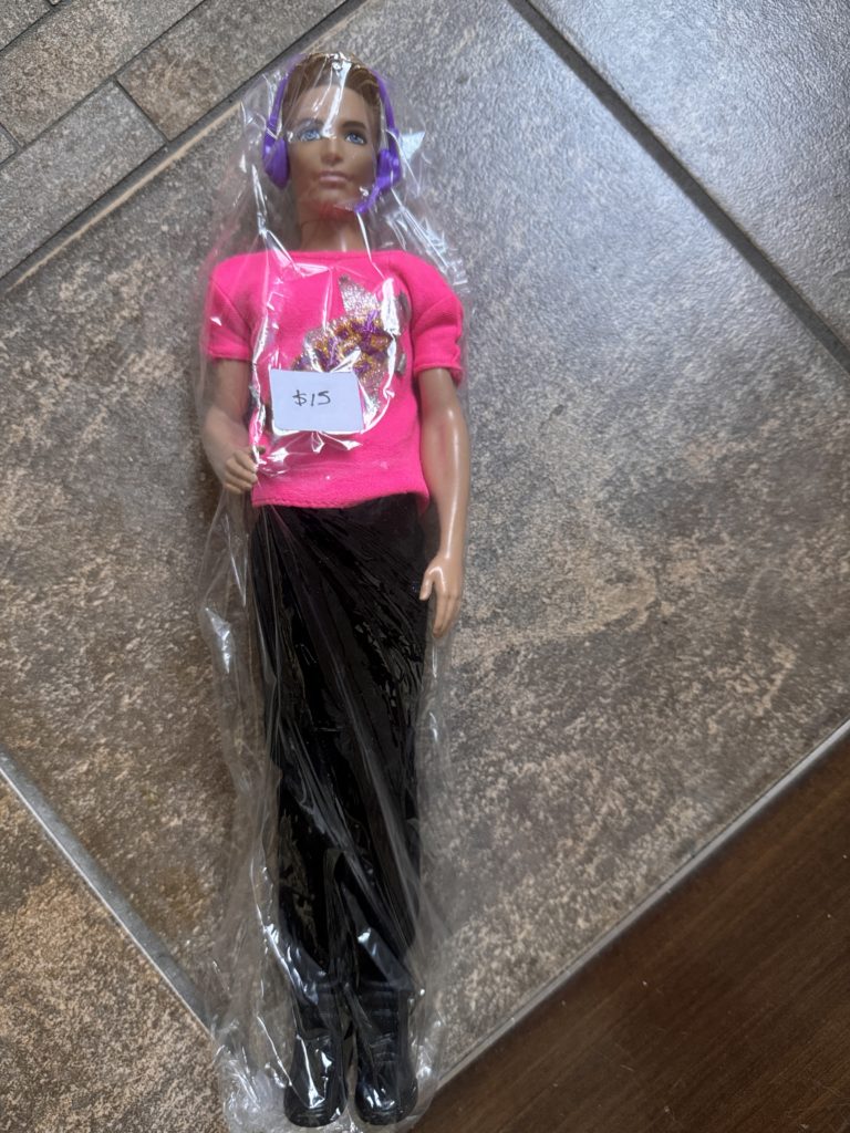 Ken avec 4 articles : gilet et pantalon avec souliers et écouteurs & micro