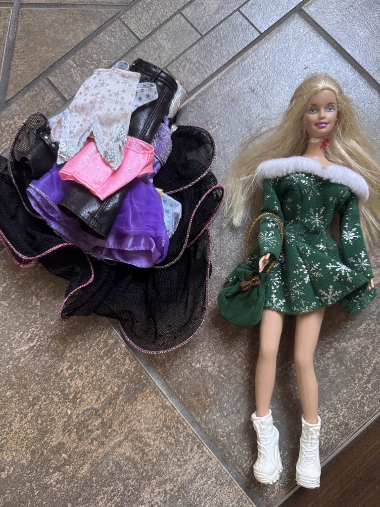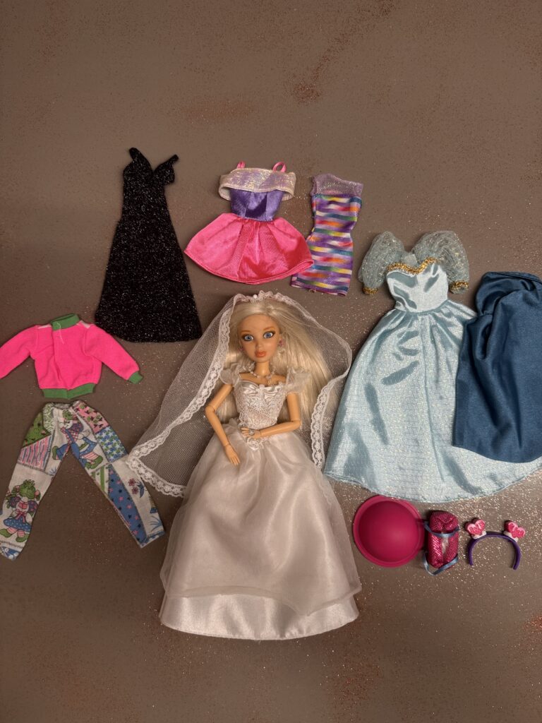 Poupée Barbie un peu grassette avec 10 vêtements/acc