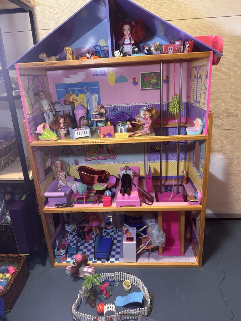 Maison de Barbie avec 90 articles (37po de large x 24po de profond x 36po de haut)