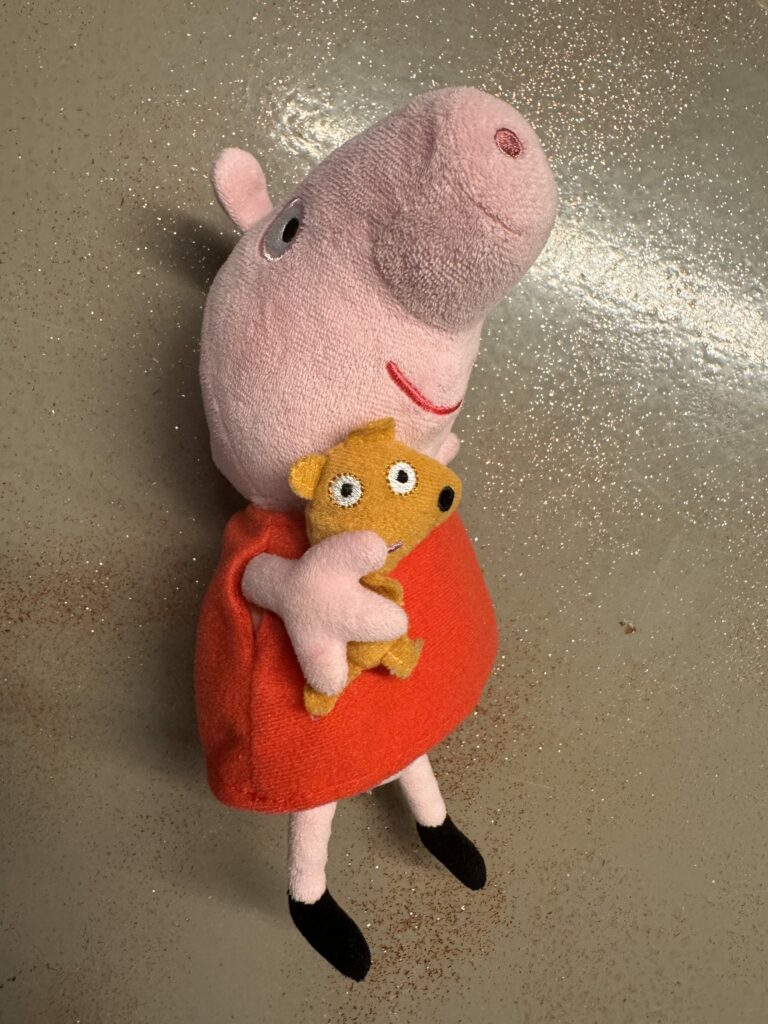 Petite peluche Peppa Pig de 8po de haut tenant un toutou
