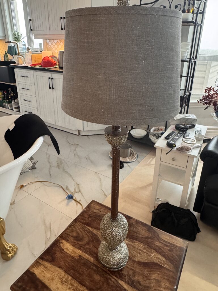 Lampe gris/beige (11po de diamètre x 34po de haut)