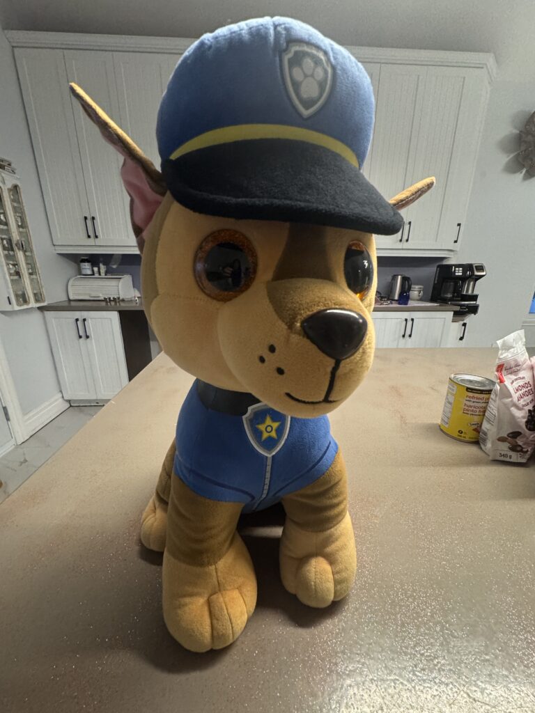 Énorme peluche Chase de la Pat’ Patrouille (18po de haut)