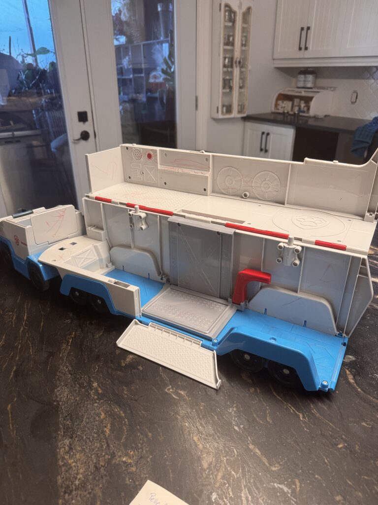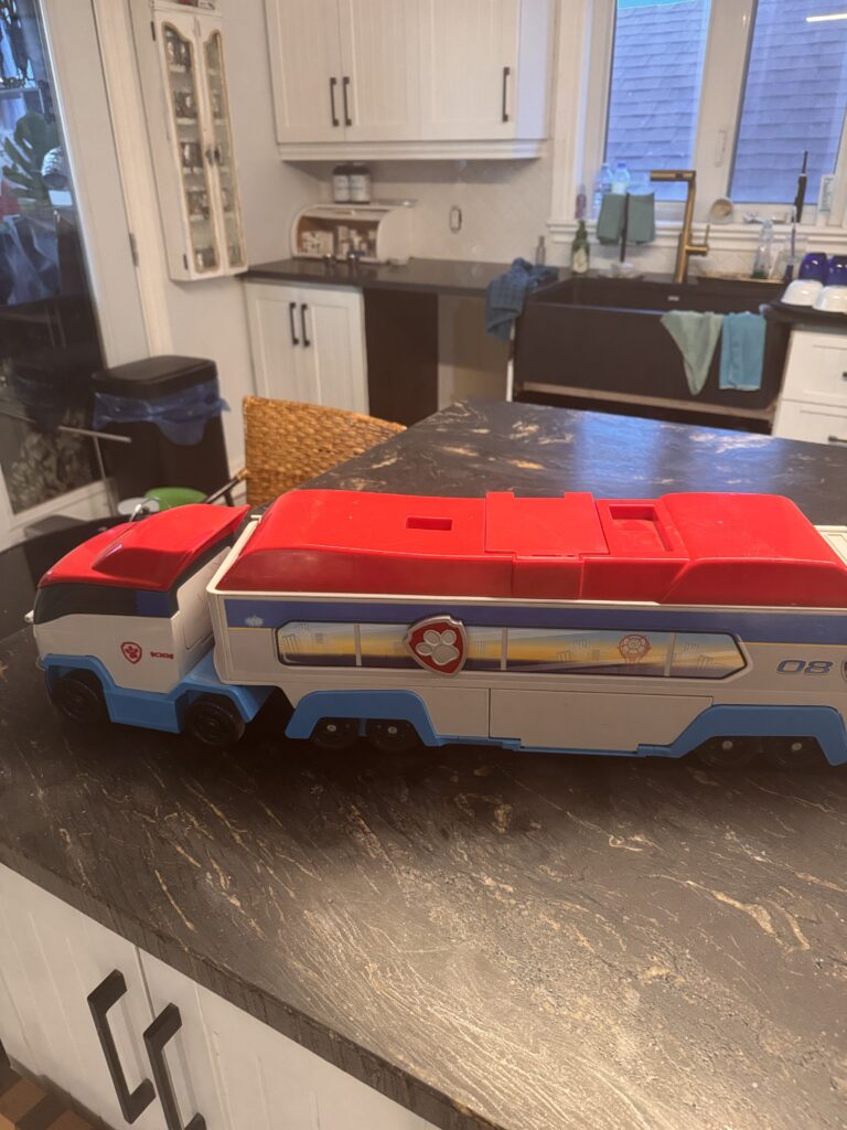 Camion-remorque de la Pat Patrouille; s’ouvre complètement pour les voiture en panne