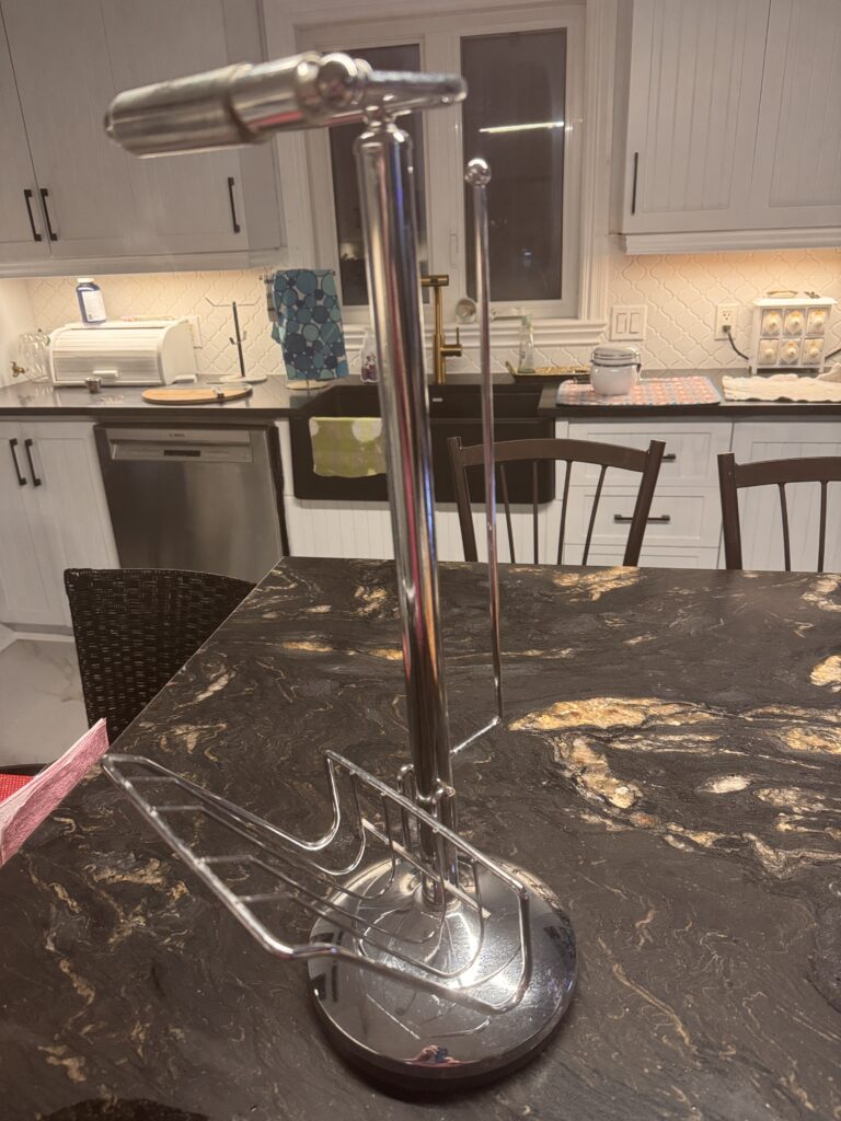 Porte-serviettes (4) argent et support pour pantoufle (19po de long x 12po de large x 31po de haut)