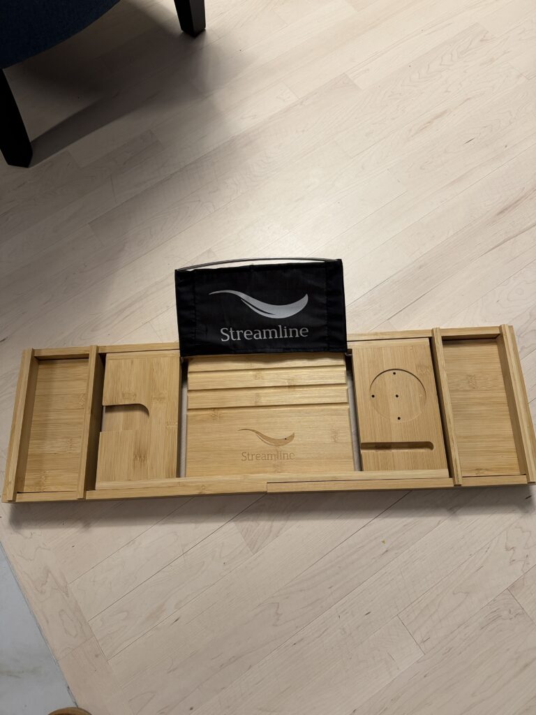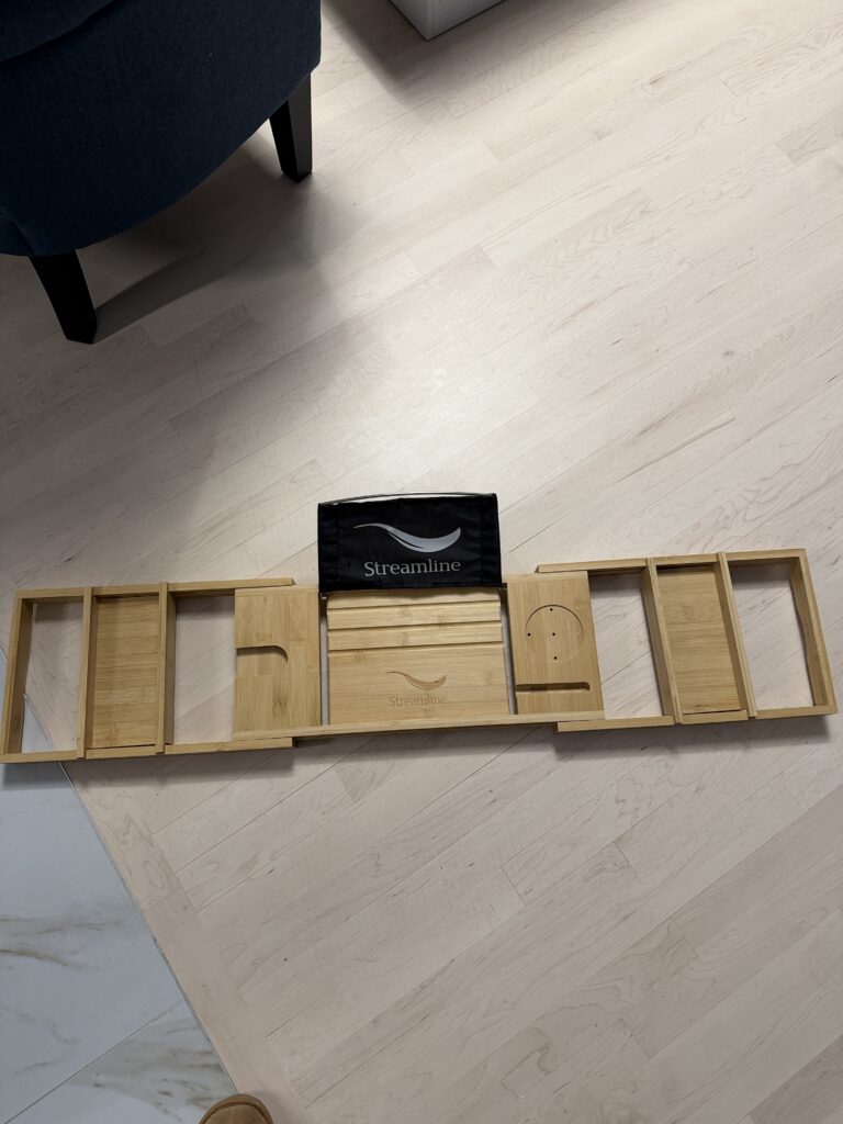 Bac de bain en bamboo; s’étire de 30po à 43po; avec repose tablette