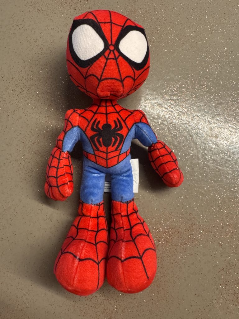Comprend: coussin, vanne avec petit Spiderman qui s’y insère, pantoufles 5/6 et figurine de 12p de haut de Spiderman